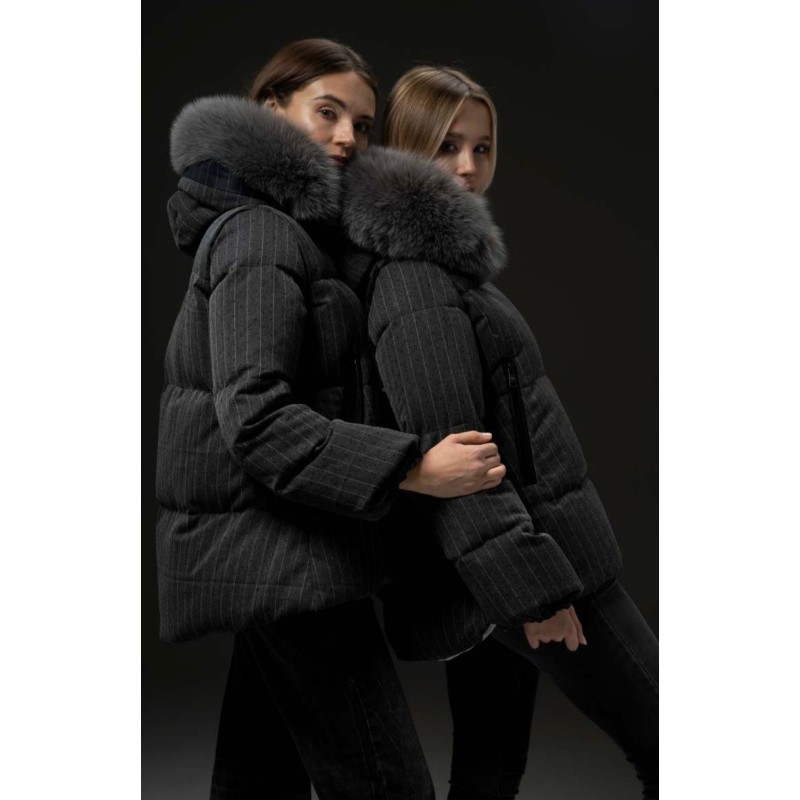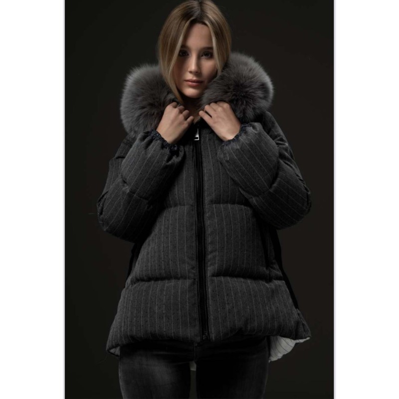 Su capucha está rematada con un espectacular ribete de piel natural, suave y voluminosa, que aporta un toque de distinción y lujo.
