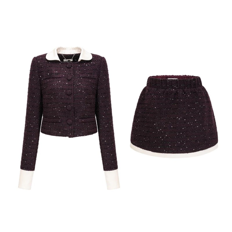 FALDA DE TWEED CON LENTEJUELAS MORADAS