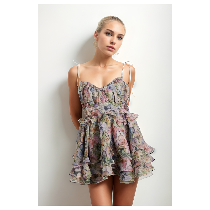 VESTIDO MINI PLISADO CON ESTAMPADO FLORAL