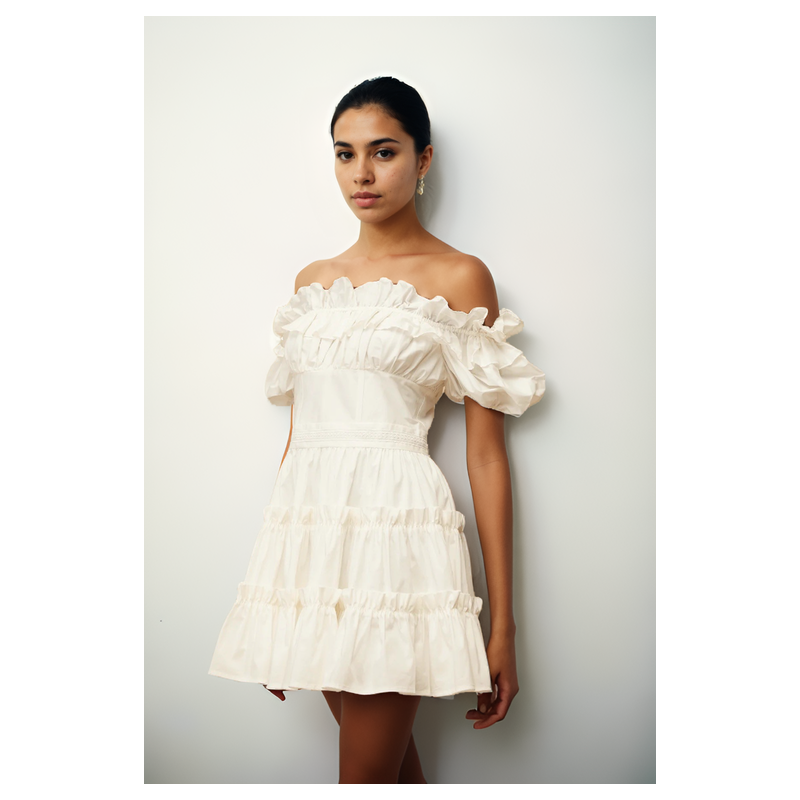 Vestido mini arrugado off-shoulders colección cápsula 1.2 by Pure&Peaches