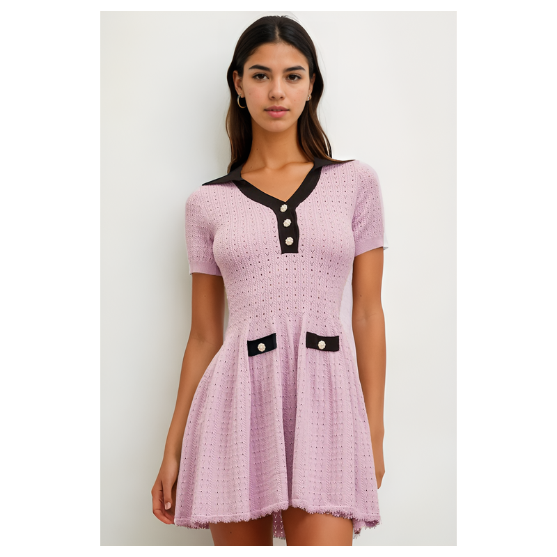 Vestido mini punto morado de la colección cápsula 1.2 by Pure&Peaches.