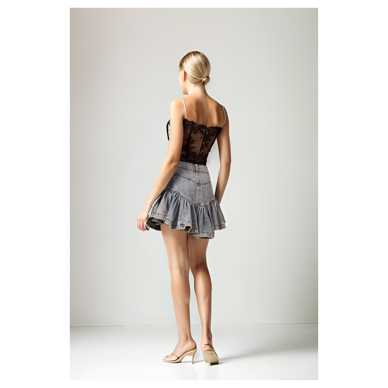 Minifalda vaquera con volantes de la colección cápsula 1.2 by Pure&Peaches.