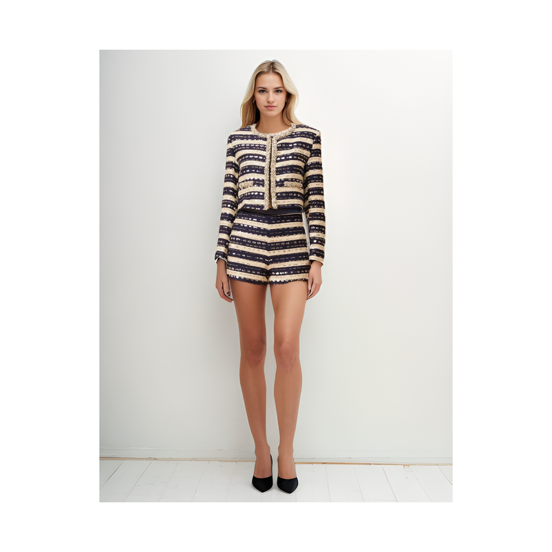 SHORT DE RAYAS ADORNADA