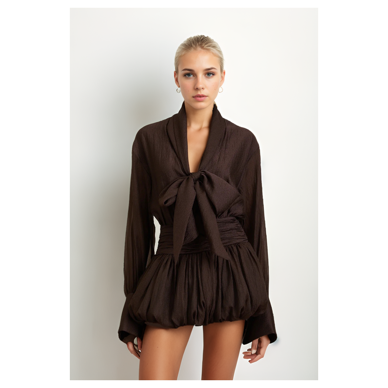 VESTIDO CORTO CON LAZO EN EL CUELLO