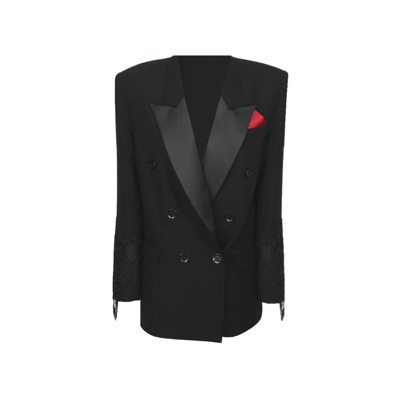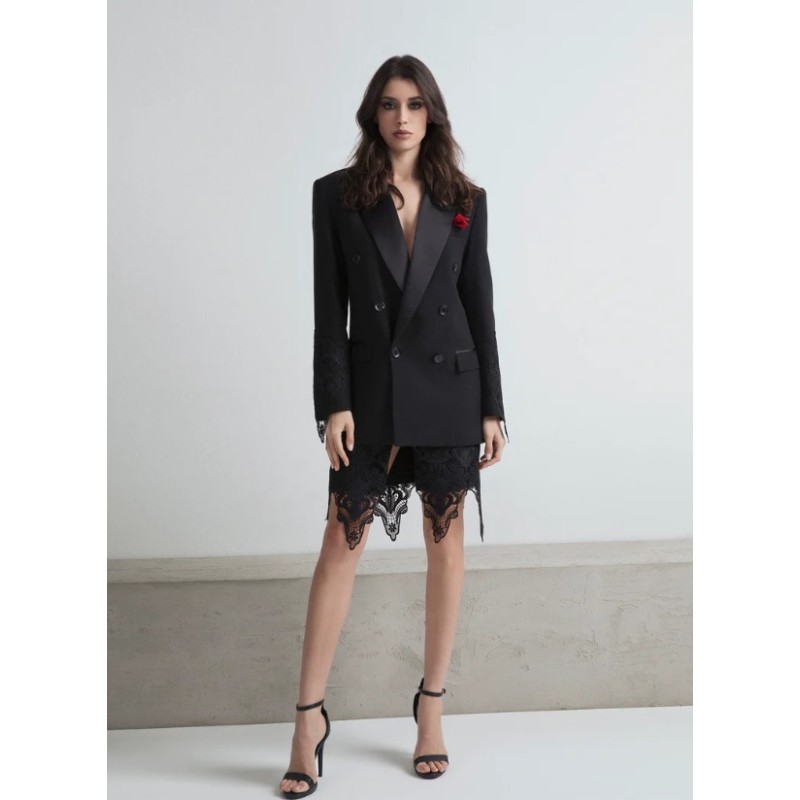 Blazer entallado de doble botonadura con insertos de encaje.