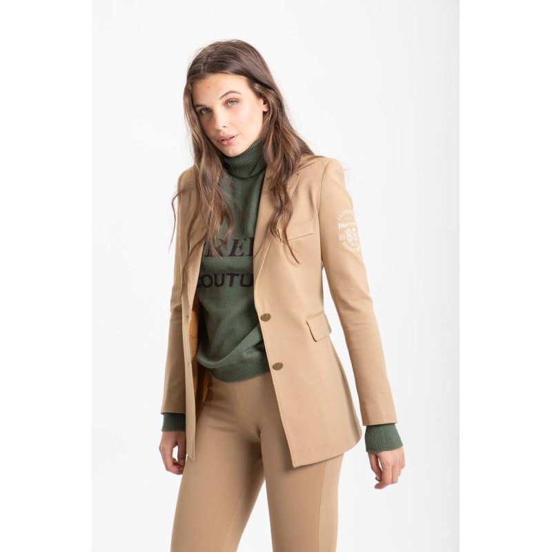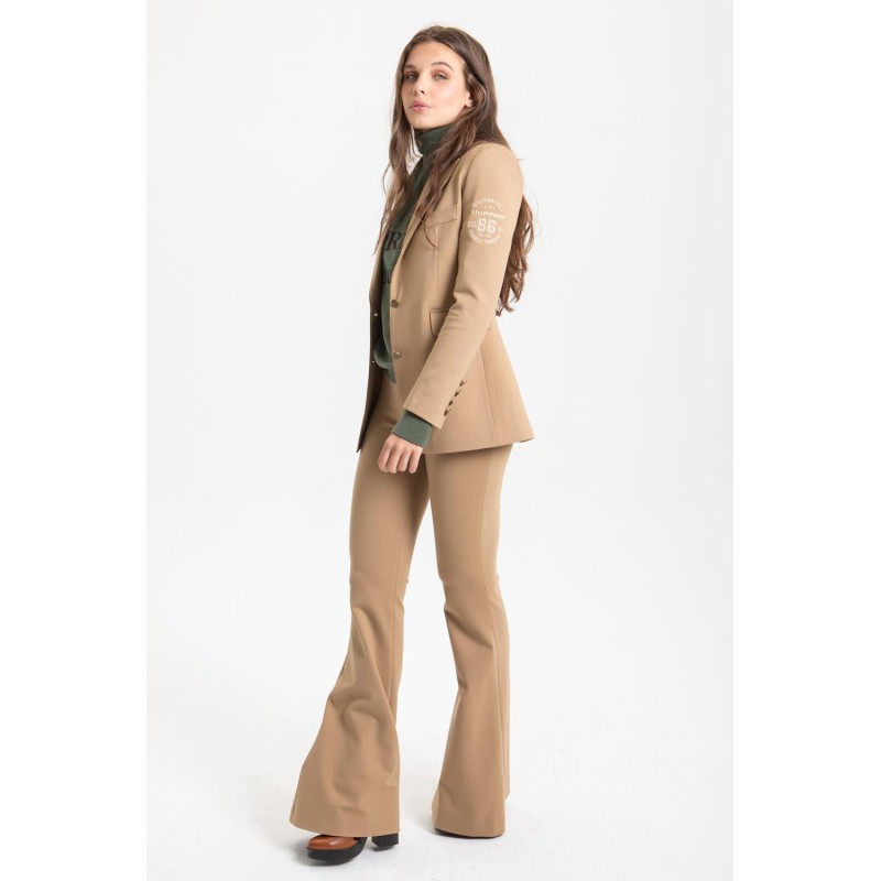 Pantalón de punto pata campana camel de la colección FW 2025 de la firma Highly Preppy.