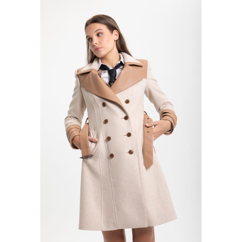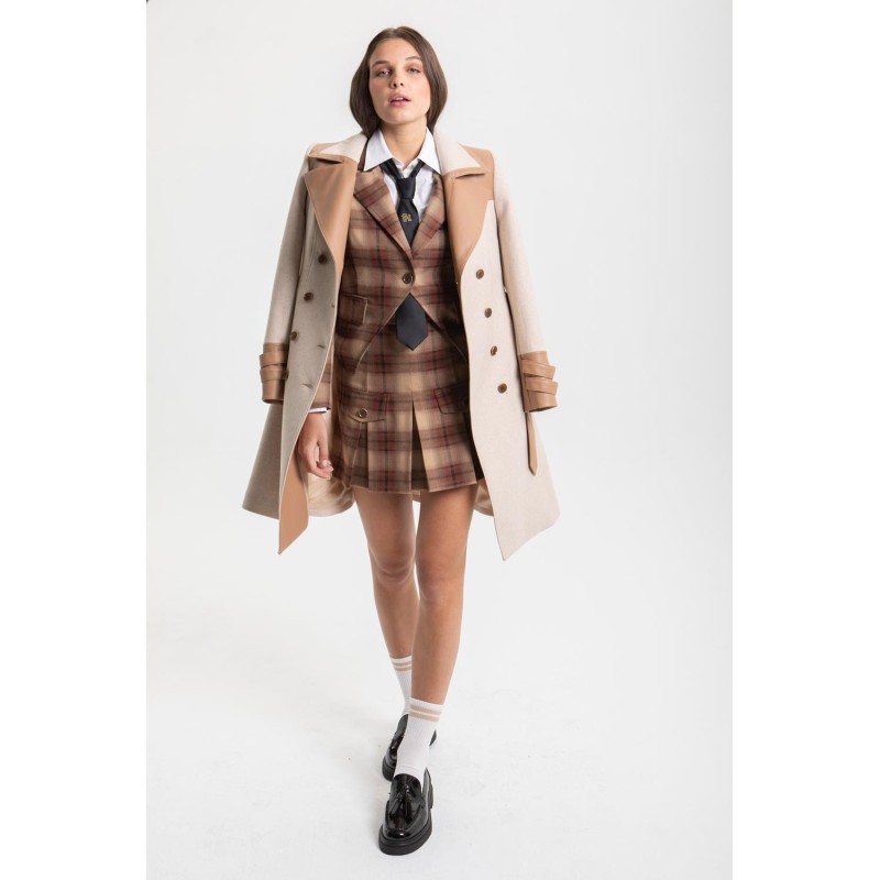 Abrigo combinado arena-camel de la colección FW 2025 de la firma Highly Preppy.