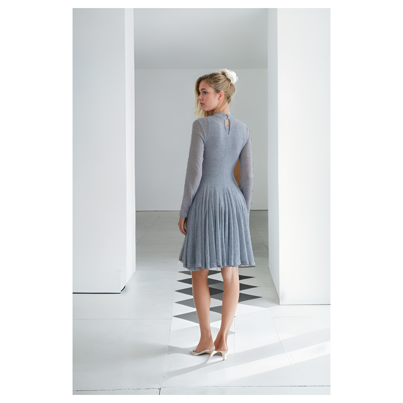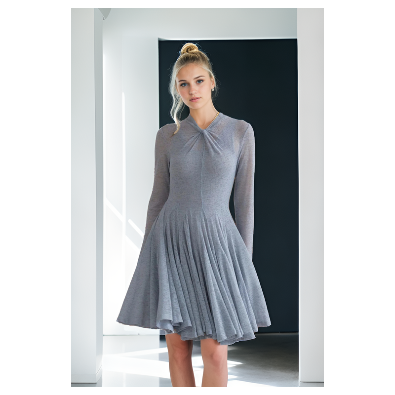 Vestido Mini de Punto gris con detalle torcido de la colección cápsula 1.5 by Pure&Peaches.