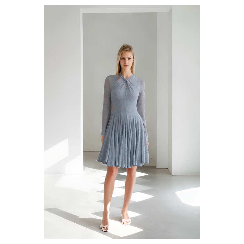 Vestido Mini de Punto gris con detalle torcido.