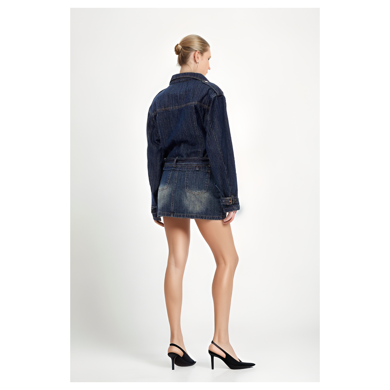 Conjunto de Chaqueta Biker y Falda de Denim Azul.