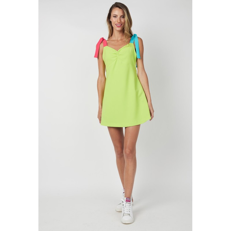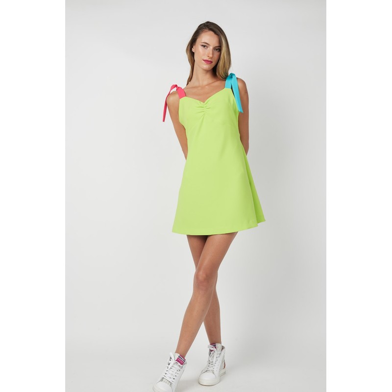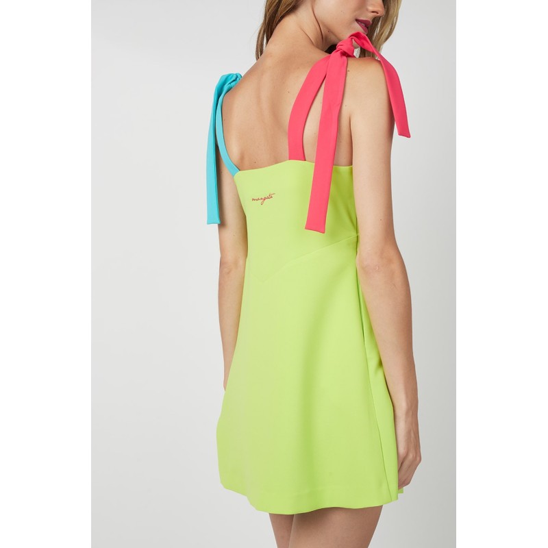 Vestido lazos capa color lima de la colección SS22 de Mangata.
